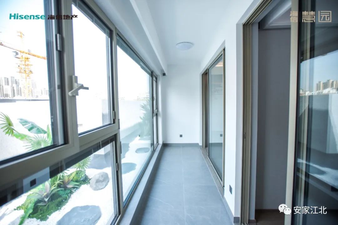 海信慧园所有户型都采用了双阳台设计,107㎡户型阳台的长度约8.3米,进深约1.5米,尺度拉满。而且,全屋窗户都是三玻两腔断桥隔热铝的,隔绝声音的效果更佳。